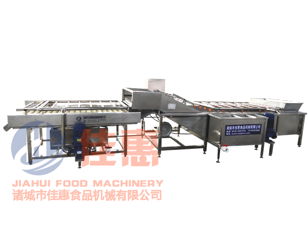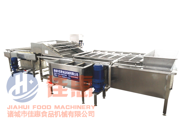 首先,需要清洗的大棗全部放入水槽,在高壓水流和強(qiáng)力氣泡的作用下,被充分打散、翻滾、清洗、傳送。設(shè)備上端配有高壓噴淋,產(chǎn)品在池中翻滾,再有高壓水沖擊,大棗表面的泥沙會脫落,通過網(wǎng)帶沉淀到底部隔離倉,。雜質(zhì)漂浮表面,通過溢水口溢出;細(xì)沙會經(jīng)過網(wǎng)帶沉淀到底部隔離倉,防止翻揚(yáng)回流造成再度污染,并且會經(jīng)過水循環(huán)過濾,在雜質(zhì)箱沉淀。物料在水中劇烈翻滾攪動,清洗水經(jīng)過過濾后,由循環(huán)水泵加壓通過噴嘴回沖,噴嘴方向可調(diào),物料被噴嘴噴出的高壓水得以再次沖洗,并朝著出口方向漂移。出口處為刮板提升機(jī),刮板提升機(jī)的速度可調(diào)(調(diào)節(jié)刮板提升機(jī)速度到所需的生產(chǎn)能力),將沖來的物料送至下道工序(可根據(jù)用戶要求在出口刮板提升機(jī)上加噴淋管,進(jìn)一步進(jìn)行噴洗)。 隨之大棗進(jìn)人高壓噴淋毛輥清洗機(jī),然后通過毛輥快速轉(zhuǎn)動摩擦大棗表面,大棗隨之轉(zhuǎn)動達(dá)到全方位清洗,同時產(chǎn)品上部噴水噴淋清洗,把產(chǎn)品表面污物、灰塵及纖維沖洗下來。 技術(shù)參數(shù):